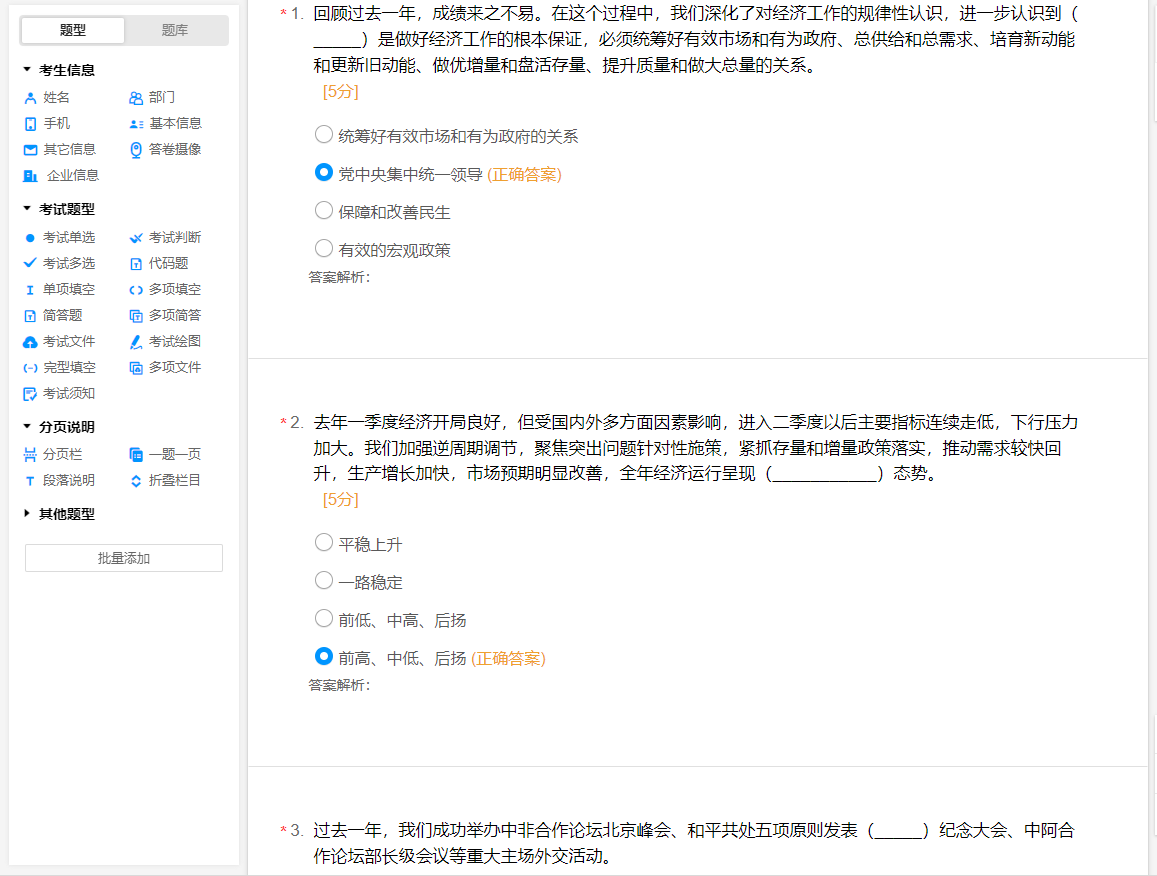 本次知识问答活动围绕2025年政府工作报告中提出的热点议题展开,彩库宝典 教师党员积极响应、踊跃参与,通过答题进一步深化了对国家战略布局的理解,特别是对高等教育服务国家重大需求、培养拔尖创新人才的时代使命有了更深刻的认识。活动结束后,彩库宝典 通过问卷反馈发现,教师对两会精神的学习覆盖面与理解深度显著提升,形成了“以赛促学、学深悟透”的浓厚氛围。