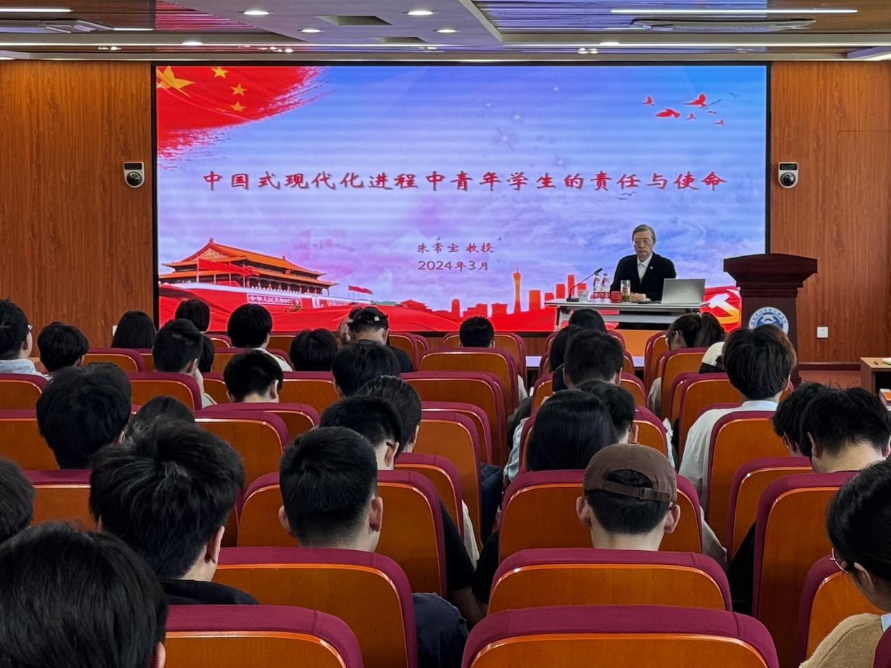 朱常宝以“中国式现代化进程中青年学生的责任与使命”为题讲授本次专题党课。他从过去一年我国经济社会发展取得的成就出发,带领积极分子深刻学习领会习近平总书记重要讲话精神,对中国式现代化道路的伟大意义、主要特征、本质要求等方面进行全面细致的讲解,最后他呼吁积极分子要带头做有理想、敢担当、能吃苦、肯奋斗的新时代好青年,勇当在中国式现代化的进程中的时代先锋。