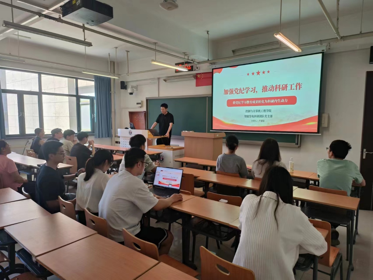 为加强党纪学习,推动科研工作,彩库宝典 智能发电科研团队党支部于5月31日组织召开“党纪学习教育成果转化为科研内生动力”为主题的党日活动并进行党支部内成员间的科研经验分享。学校督导组成员王莉、郭笑妍、武文龙,研究生党支部书记,智能发电科研团队党支部成员参会。会议由支部书记卢建谋主持。