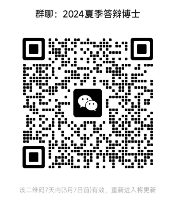 请申请2024年夏季答辩的博士生扫码加群: