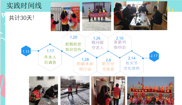 四位同学在寒假期间,分别围绕了共同富裕,返乡宣传,冬奥以及疫情防控开展了实践。