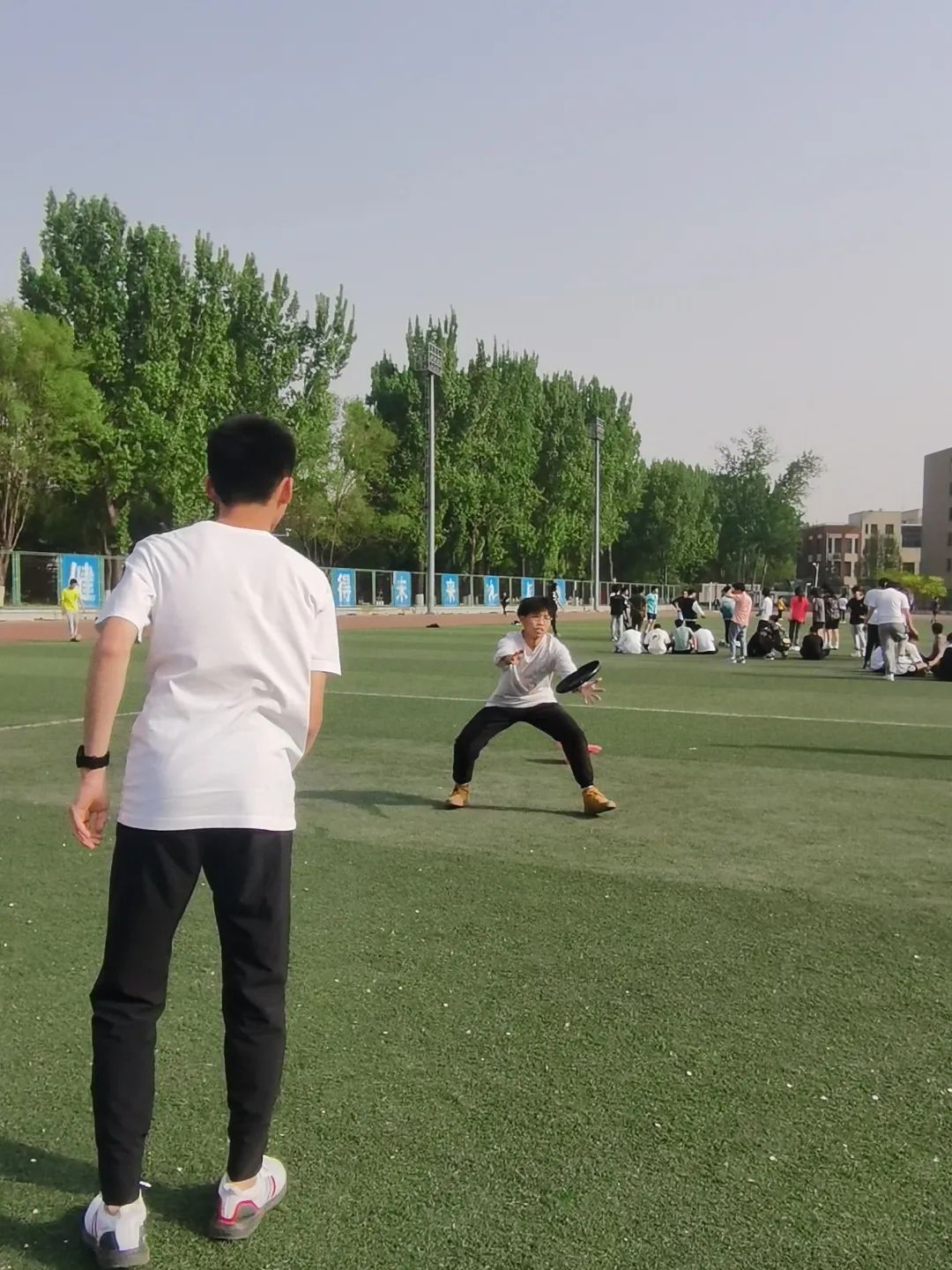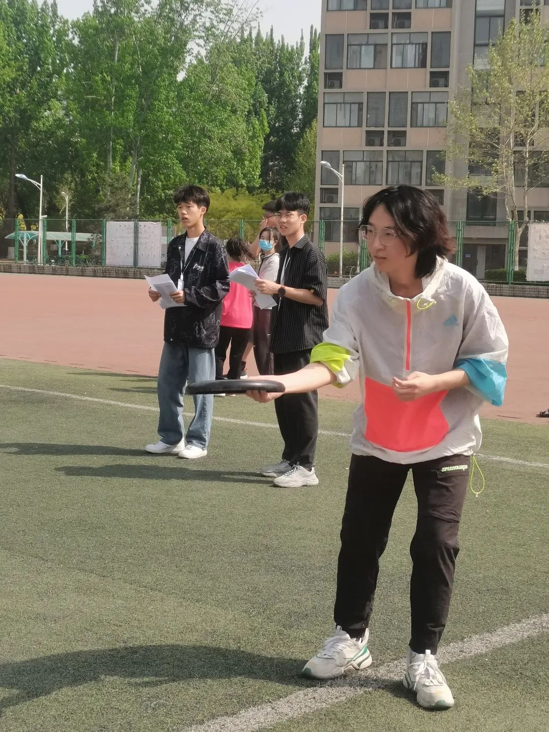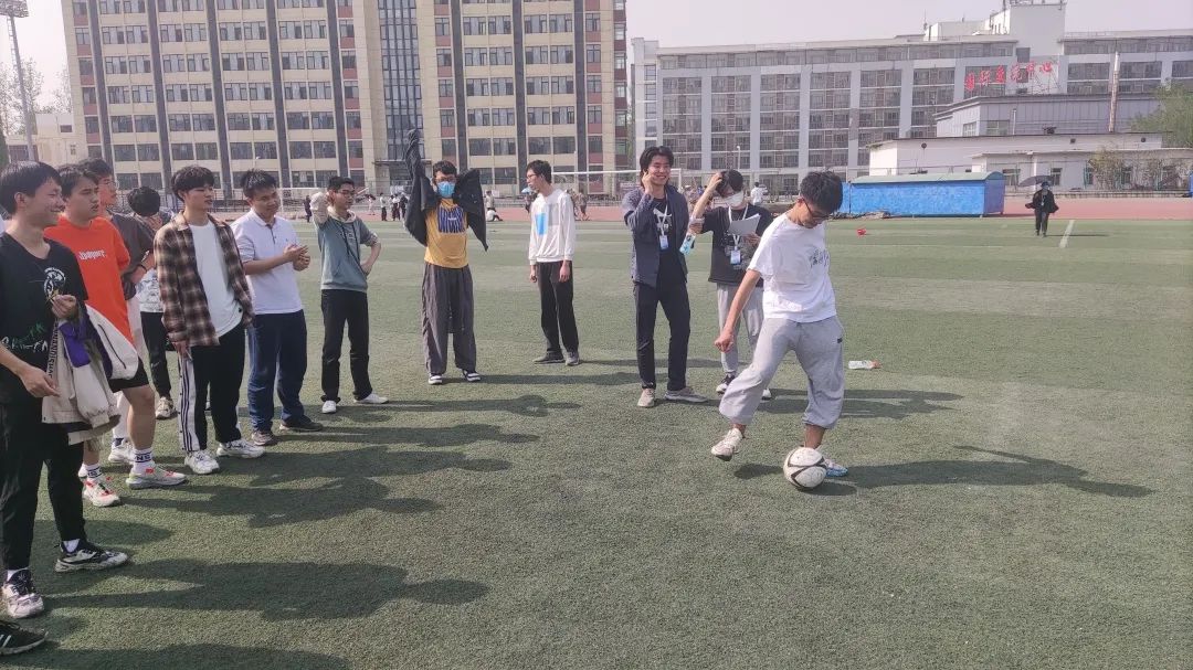 本次彩库宝典 运动会新增加了两个团队娱乐项目:飞盘答题接力和足球选择射门。不像传统单人项目那样耗费天赋和体力,团队项目更考验集体的配合,考验同伴之间的默契,和当今大学生的知识储备。