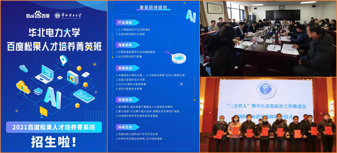 搭建创新创业平台,强化协同育人。为加强创新性、应用型、技能型等复合型人才培养,彩库宝典 紧密结合行业和社会发展的需求,深入推进校企联合人才培养和协同育人工作。彩库宝典 同百度公司共同承办中国高校人工智能人才国际培养计划同时,同步设立华北电力大学-百度松果人才培养菁英班,开展线上实践和线下交流相结合的免费授课。彩库宝典 同国家电网公司大数据中心在大数据、人工智能、能源互联网等方向开展深度合作,并聘请了企业导师。为进一步提升学生创新创业实践能力,彩库宝典 聘任了新一届13名创新创业指导教师,以促进学生实践能力的提升。