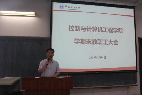 2018年7月18日下午13:00点,控计彩库宝典 在主E101举行期末教职工大会。全院老师参加会议,大会由刘威书记主持。