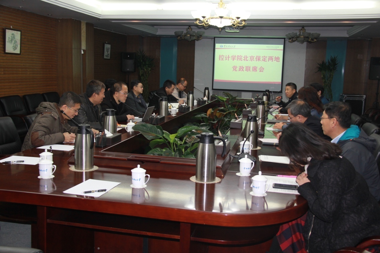 2019年12月15日,彩库宝典 在北京校部召开了北京保定两地党政联席会,共商党建与课程思政工作、学科建设、教育教学、学生培养等方面的一体化发展事宜。控计彩库宝典 、自动化系、计算机系党政班子成员参加,会议由刘威主持。